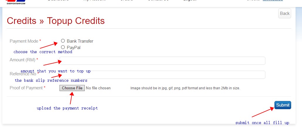 2. Fill up the details as per photo and then submit/填上每个细节如下,然后提交: